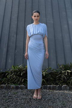 ASH BLUE RUCHED DRAPE MAXI DRESS