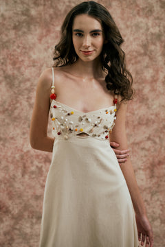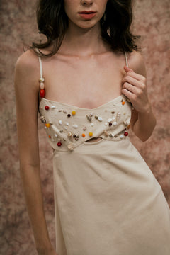IVORY DRESS WITH SEASHELL AND BEAD DETAIL