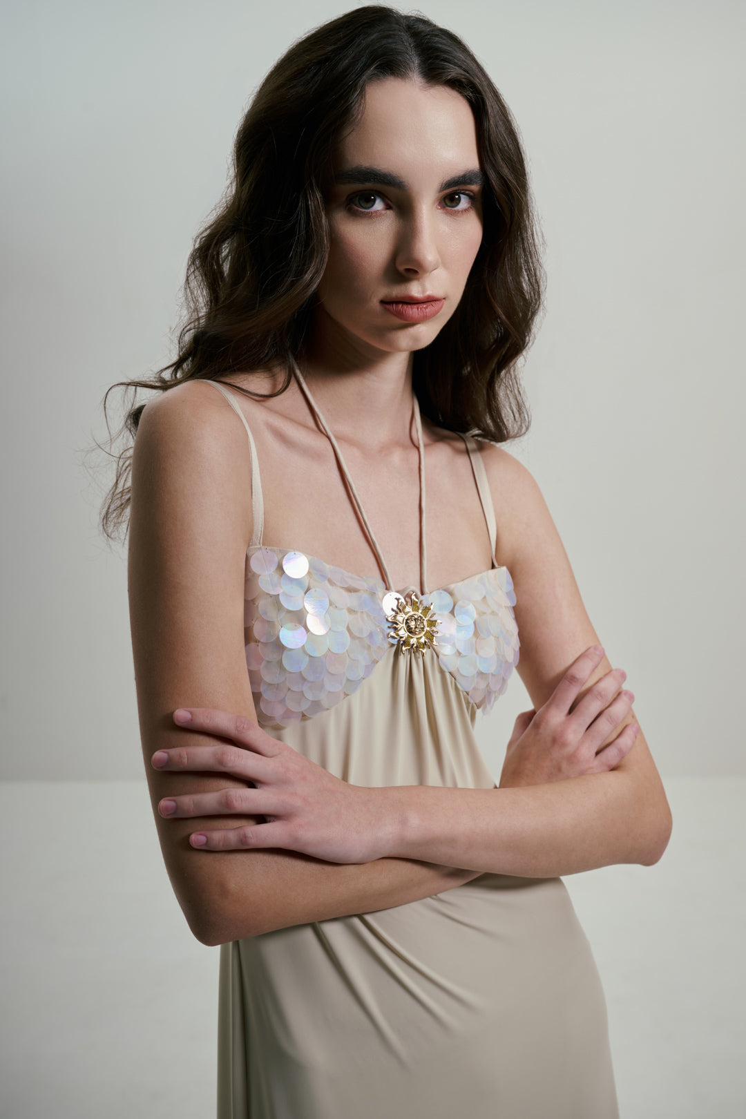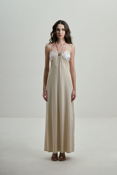 IVORY MAXI DRESS WITH SEQUINS BUST DETAILS