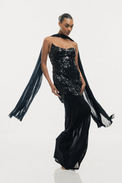 MIDNIGHT BLACK SEQUIN BODYCON MAXI DRESS