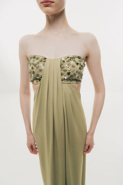 SAGE GREEN STRAPLESS EMBELLISHED MAXI DRESS