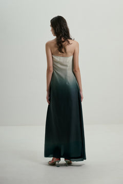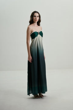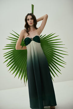 STRAPLESS OMBRE GREEN MAXI DRESS WITH COWRIE DETAIL